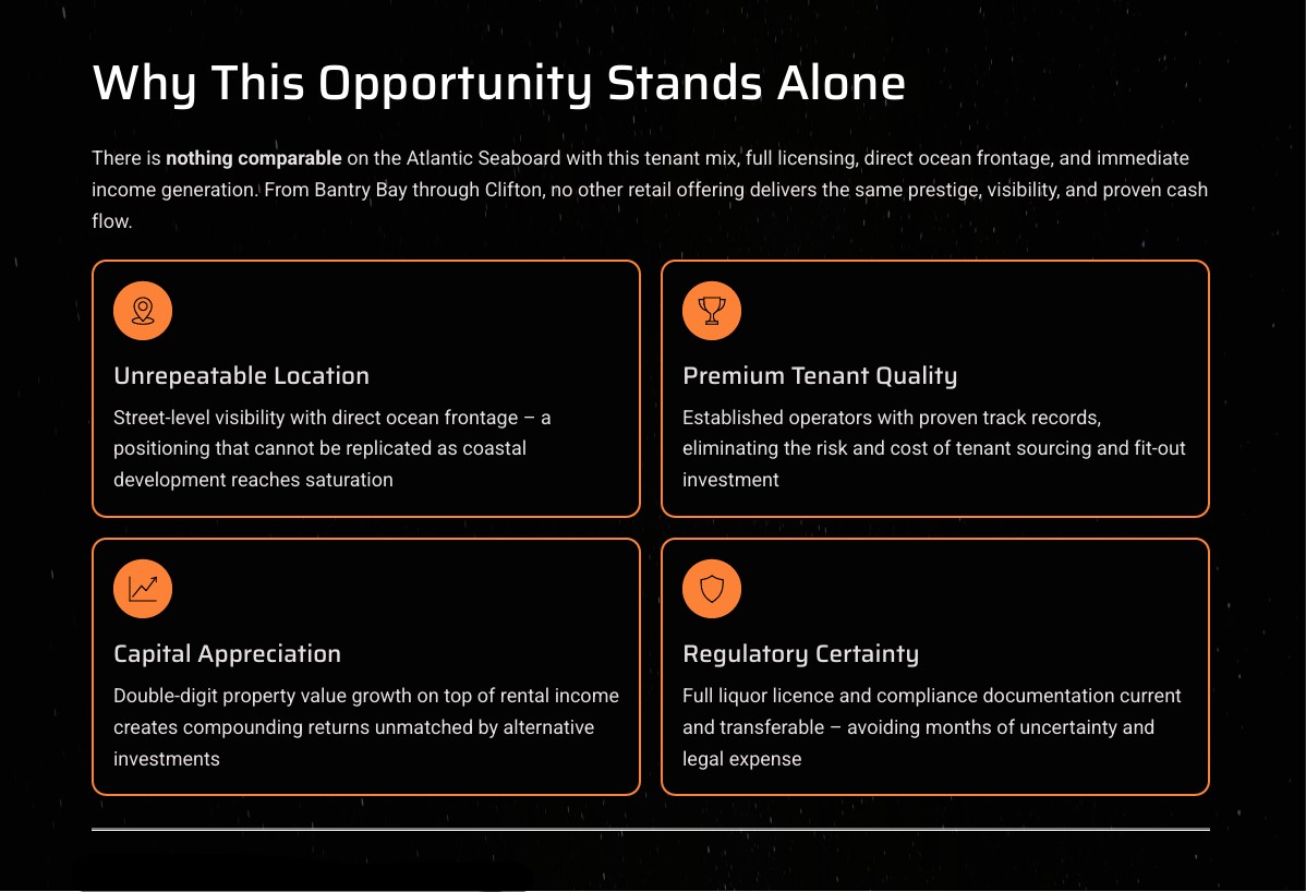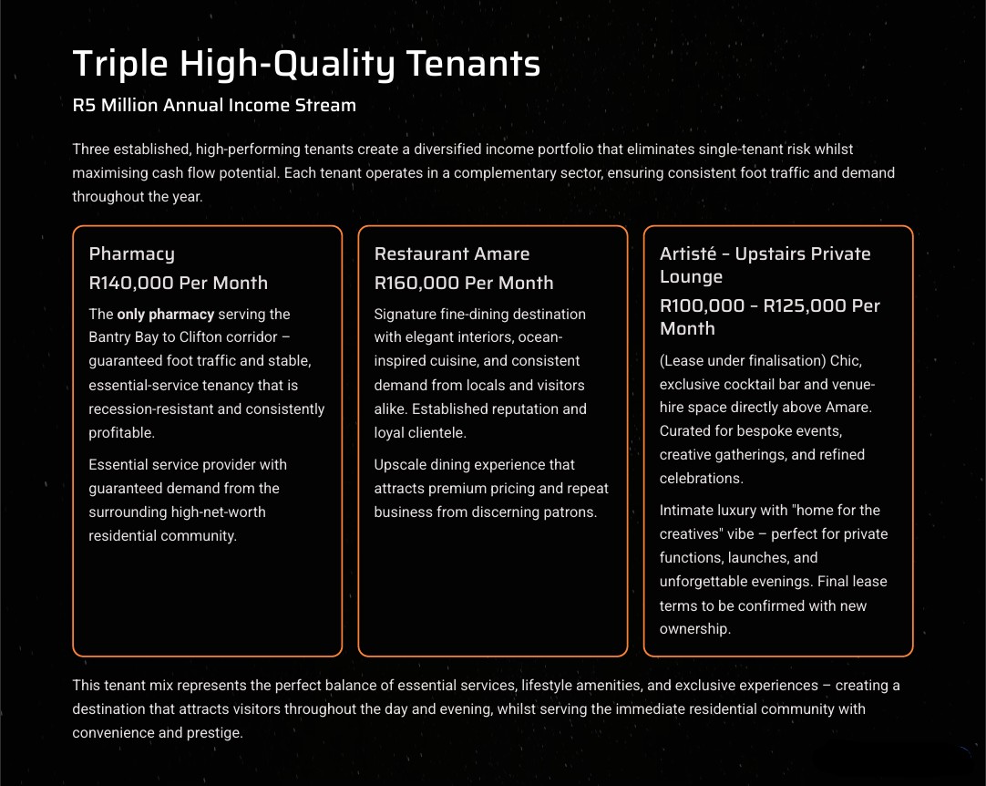 This is a once-in-a-lifetime opportunity. No new liquor licences are being approved in Bantry Bay, Clifton, or Fresnaye – yet this property already holds one, making it even more valuable.